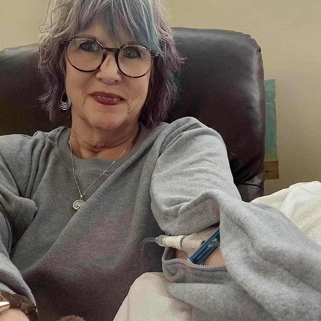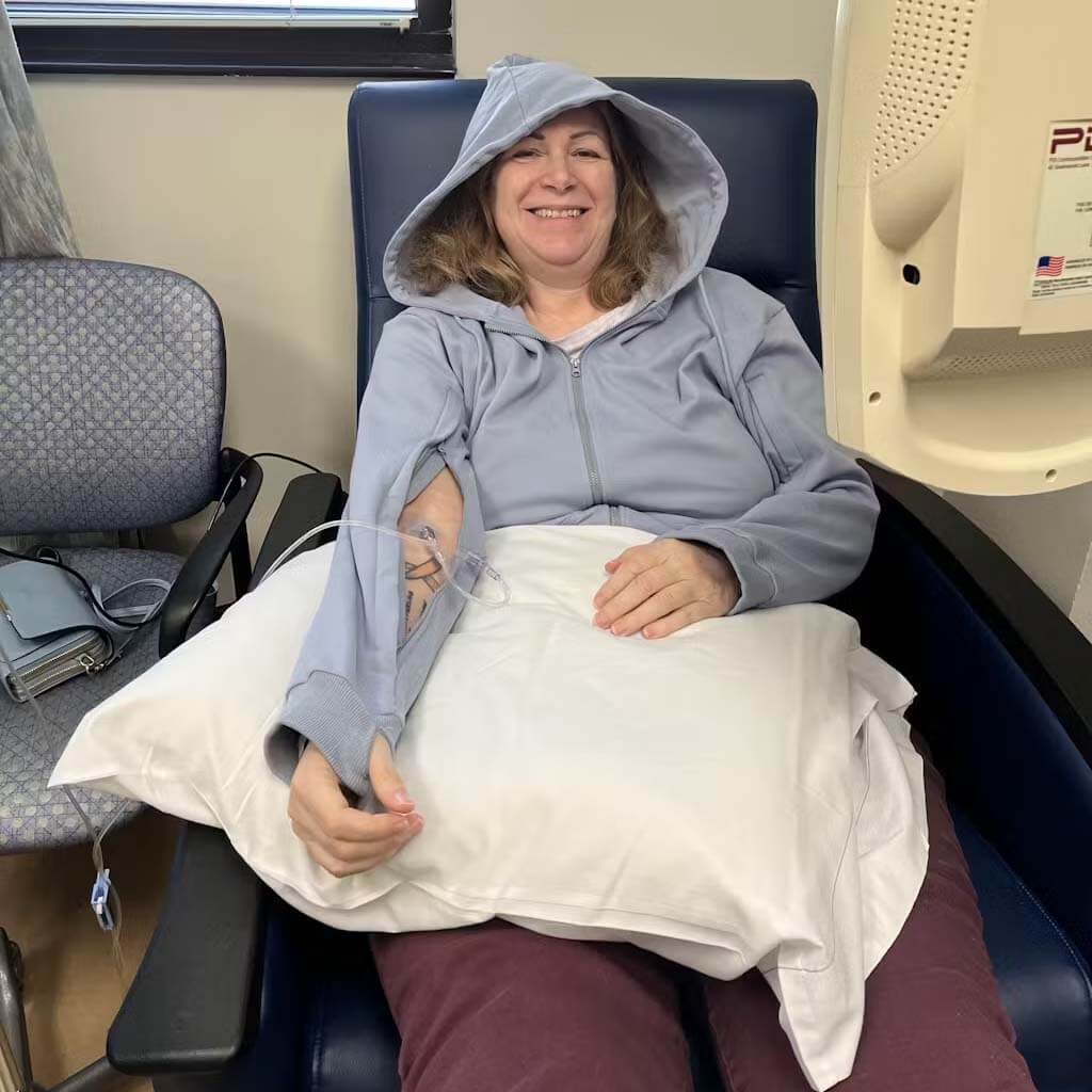 'It allows the nurses to have access to administer the infusions without having to take my whole arm out of my sleeve and I stay nice and warm during the infusion process. I loved it so much that I bought one for a dear friend of mine.'