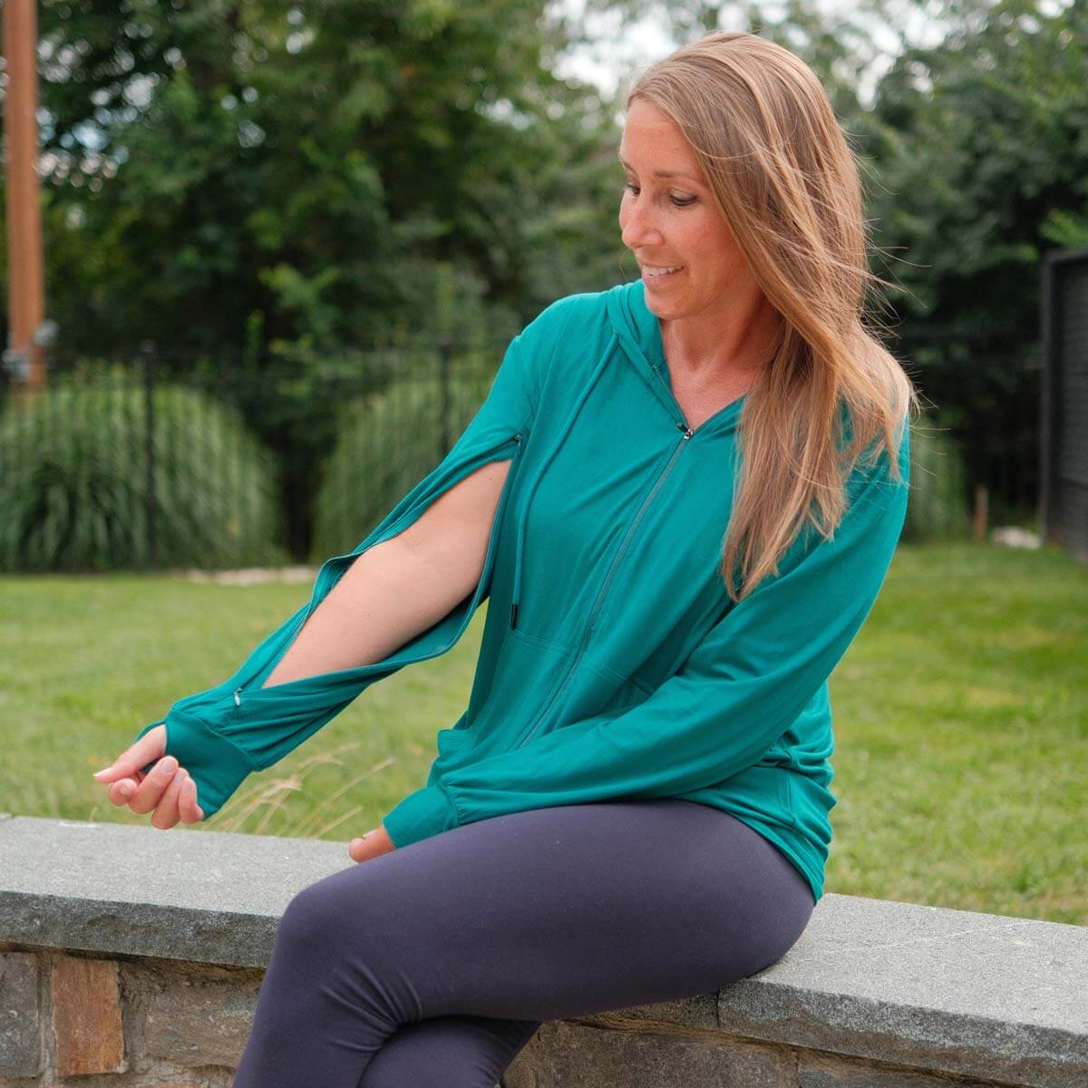 “I use the Multi-Access Hoodie for G-tube access and stomach injections. It’s discreet and actually really cute.”