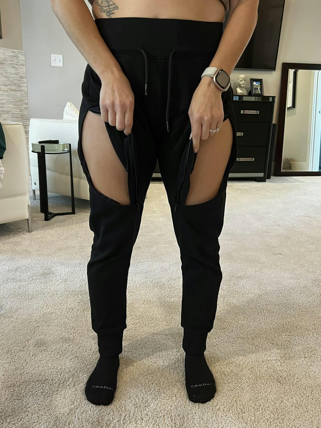 They’re designed with discreet zippers on both thighs, allowing quick, easy access for injections without needing to remove your pants or compromise comfort.
