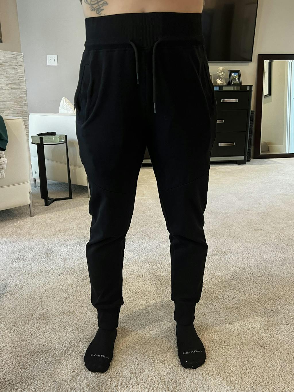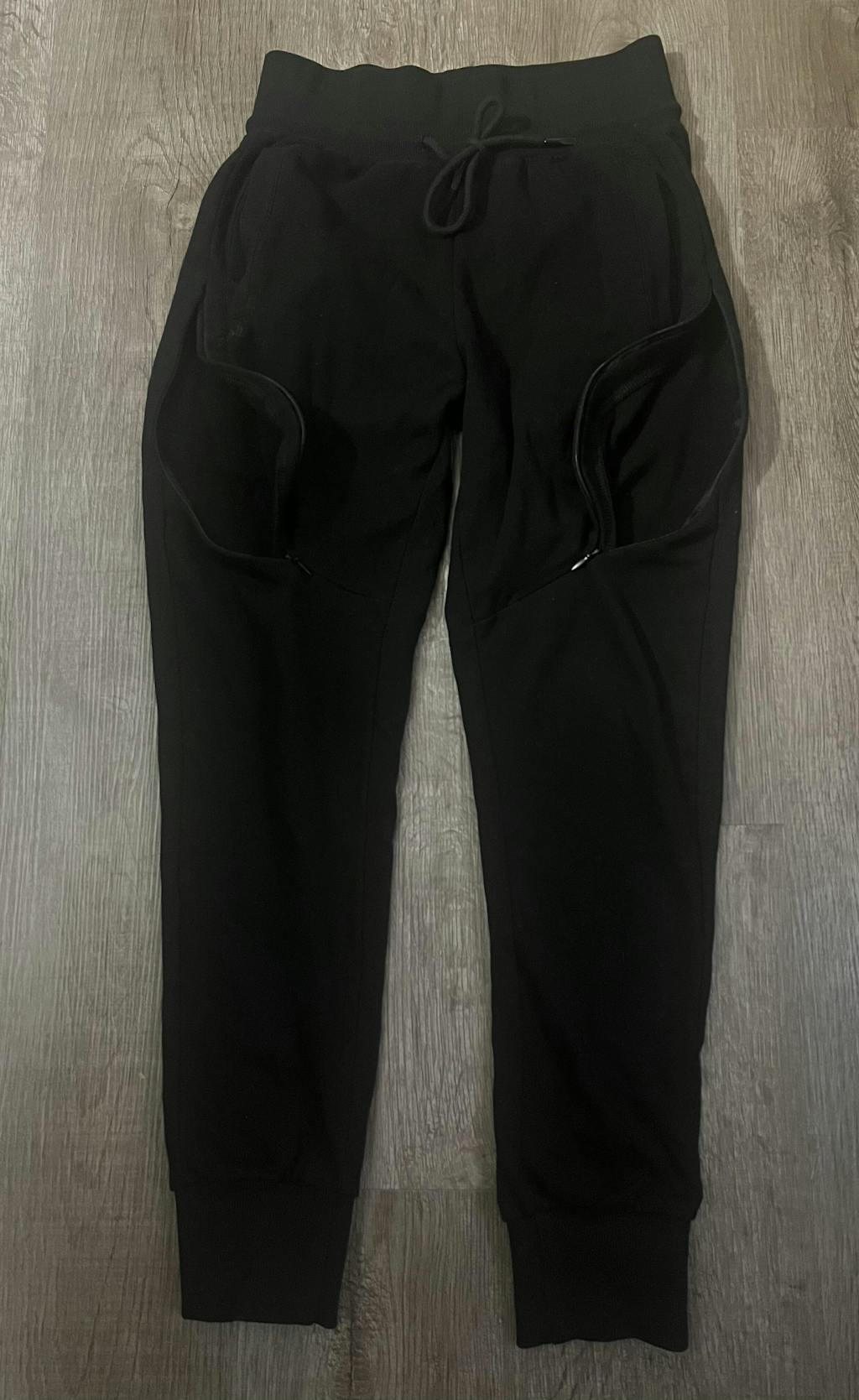 Each jogger leg has a hidden zipper on the upper thigh, giving you flexibility for left or right side injections while staying fully covered.