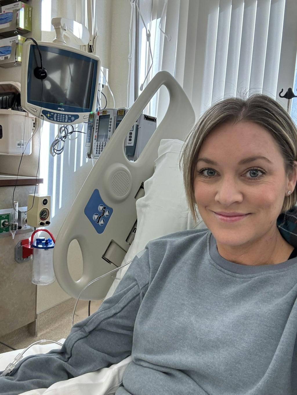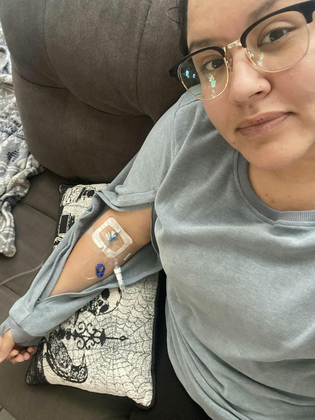 Because it combines a simple, stylish crewneck look with the functionality needed for infusion days. You stay warm, comfortable, and covered.