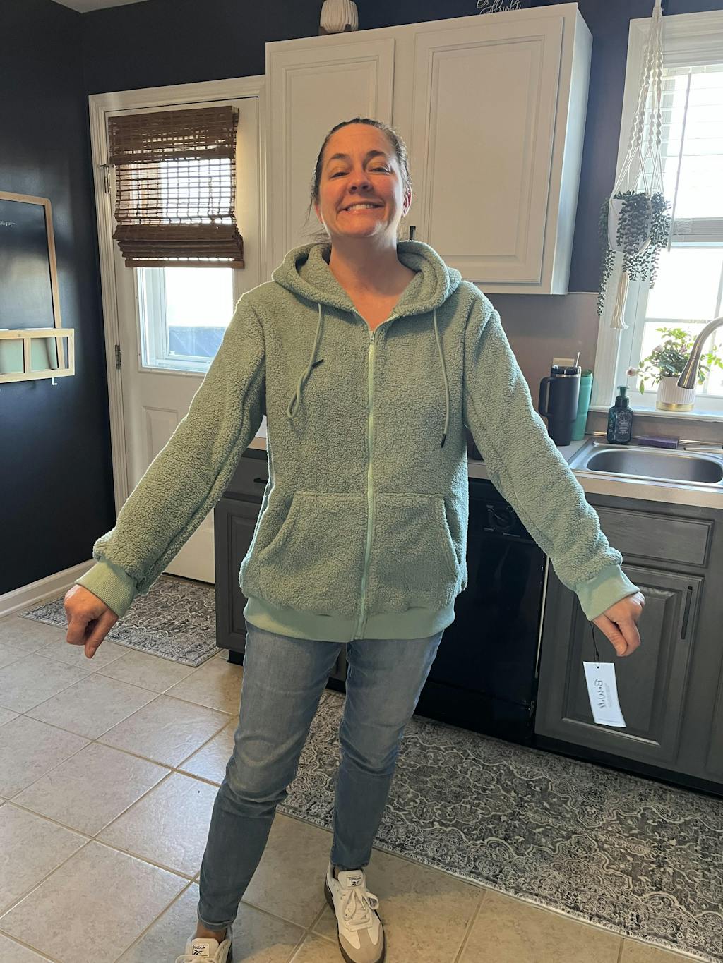 Regular sherpa hoodies aren’t designed for medical access. With ours, you don’t have to struggle to pull sleeves up or remove layers during treatment — just unzip the discreet zippers on the sleeve(s) and you’re ready.